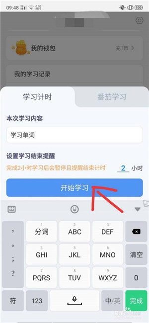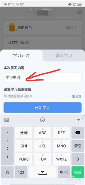 3、同时,在“设置学习结束提醒”中填入大概的学习时长。