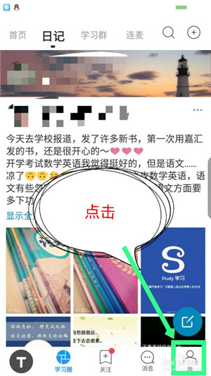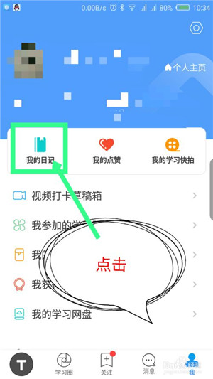 2、在打开的我的界面,点击头像下面的我的日记图标选项。