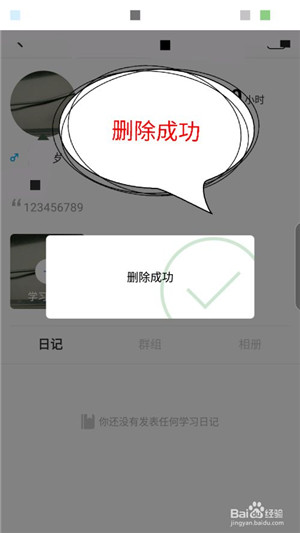 5、删除成功后,屏幕上面会有提示,在我的日记里面也看不到刚才的日记了。