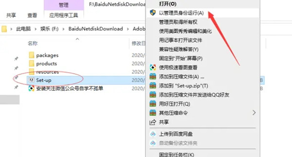 2、解压安装包后,右键点击以管理员身份运行Set-up安装程序。