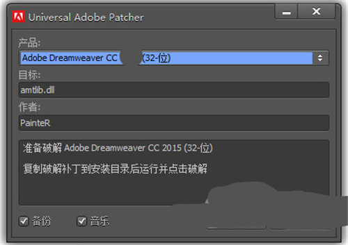 4、在产品列表中选择adobe photoshop cc 2015 32位后,点击破解即可。