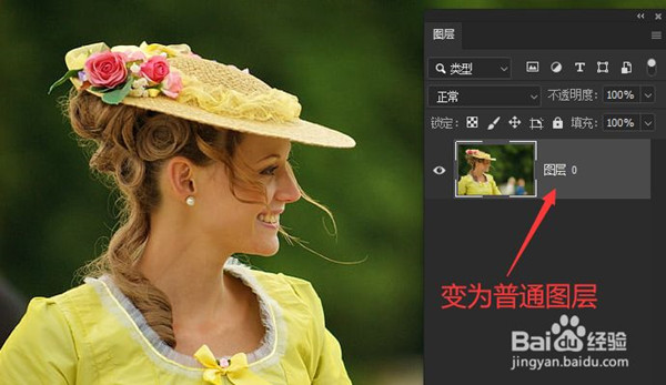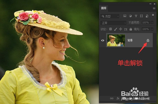 2、先不要着急抠图,现在一定要打开图层面板,可以按F7键打开,此时如果图层面板显示的是背景图层,则需要单击背景图层上的锁定标记将其解锁转为普通图层。