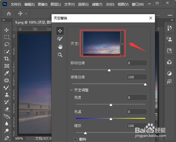 3、我们打开天空替换之后,在天空预览图中它会随机出现一张天空的图片。