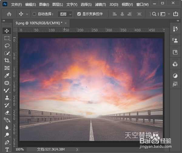 6、最后,我们来对比一下天空替换的前后效果。可以看到天空替换前是灰朦朦的,天空替换后就变成很唯美的效果了。