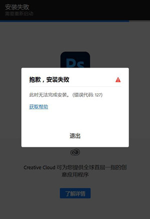 由于PS 2021的正式版本出来了,所以这几天最多的问题就是这两个问题,一个就是在安装过程中提示安装失败,此时无法安装,提示信息界面如图示: