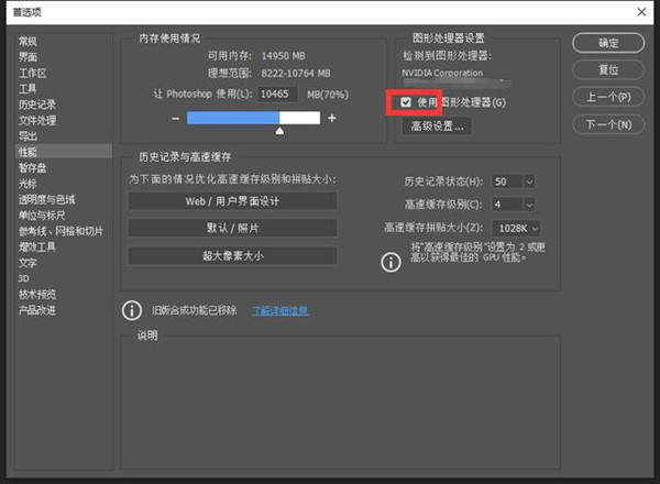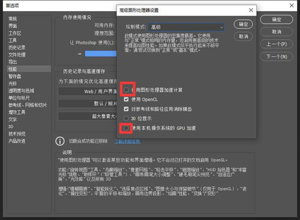 如果还是不可用,那么就直接取消使用图形处理器的勾选:这样保证可以解决问题。当然这是以降低PS 2021性能的解决办法,最好的办法是升级显卡驱动,或是换一个好显卡!