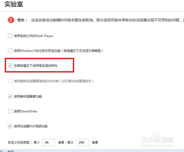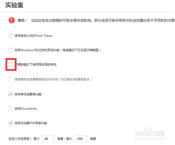 4、点击“在兼容模式下使用高级渲染特性”前面的小方框。