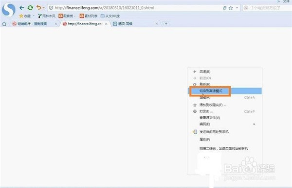 6、另一种快捷的设置方法是,在打不开或异常的网站页面单击鼠标右键,点击“切换到高速模式”。