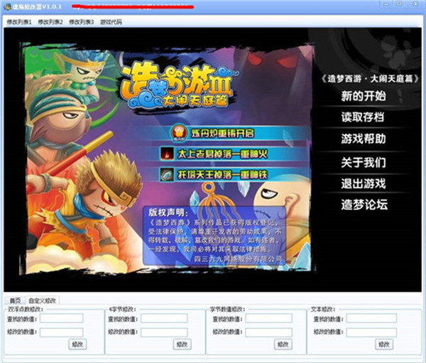 造梦西游3逍遥修改器去除了原来的弹窗广告,界面更简洁,功能更强大,是造梦西游3玩家必不可少的一个辅助。造梦西游3逍遥修改器最新版是游戏《造梦西游3》的一款辅助工具,使用后可以双浮点数修改,4字节修改,字节数值修改,文本修改,最强攻略,极品号源等等功能。