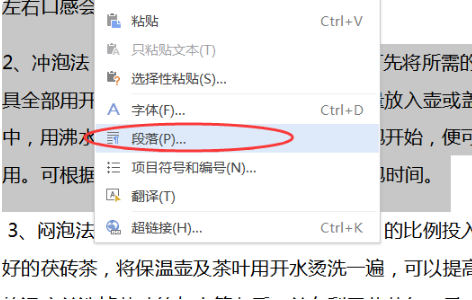 3、鼠标右键选择段落选项。