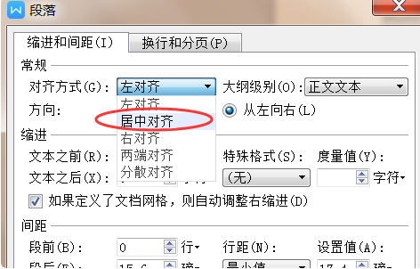 4、在常规选项卡中点击对齐方式后面的下拉按钮,选择所需要的对齐方式,这里我们选居中。