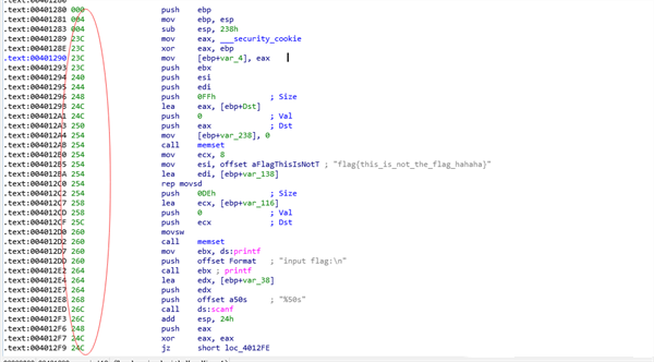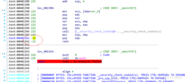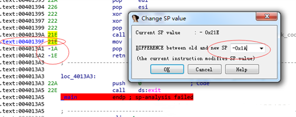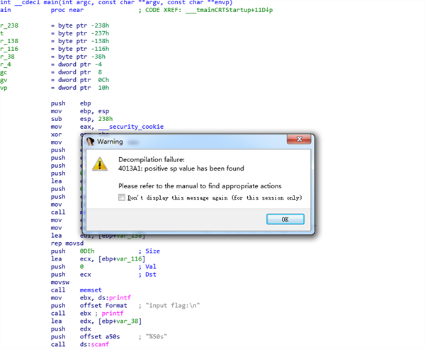 4、你会发觉代码段多了一系列东西,这就是栈指针,他告诉我们栈的高度,而postive sp value has been found ,会出现,是因为有负的栈指针;