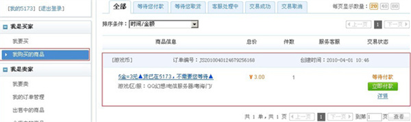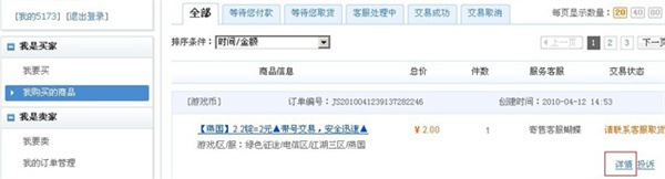1、对于买家:您可以登录5173帐号→我的5173→我是买家→我购买的商品进行查询。