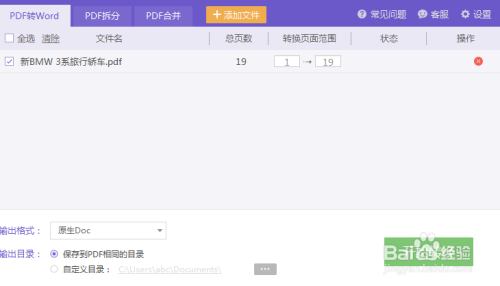 进入转化界面之后,点击开始转换按钮,输出格式默认为doc,也可以选择docx等
