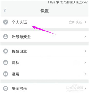 继续触开下【设置】之后,那么,继续触开下【个人认证】,如图。