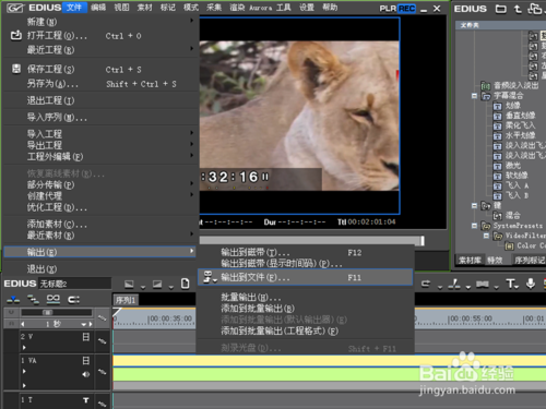 首先利用edius进行视频处理,处理完成后,执行文件-输出-输出到文件命令,或者按f11键,调出输出到文件对话框。
