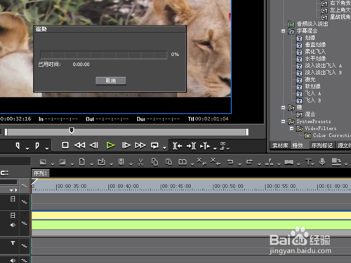 接着点击保存按钮,这个时候会弹出渲染对话框,等待进度完成就可以播放视频查看视频效果了。