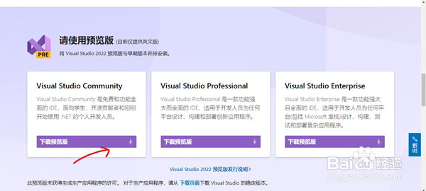 1、进入visual studio2022官网,找到VS2022预览版链接。