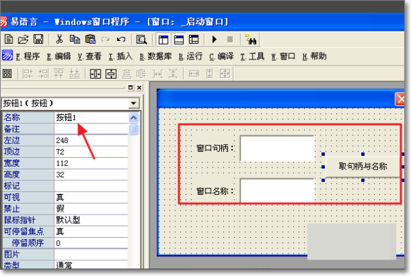 2、在程序中绘制一个“按钮”,两个编辑框,两个标签,然后改变相应的名称来识别。