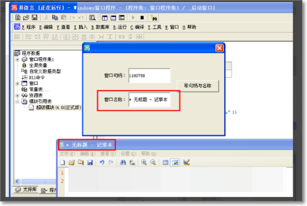 7、写完以上代码,就可以得到“记事本”了。Exe”窗口句柄,然后,获取窗口标题!继续编码如下:编辑框2。内容=取窗口标题(取句柄2)(“记事本”)。Exe”))。