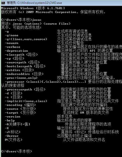 javac – 编译器,将源程序转成字节码。