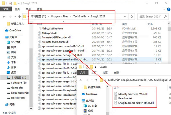 解压后把Crack里面的以下五个文件夹替换覆盖到软件的默认安装目录 C:\Program Files\TechSmith\Snagit 2019