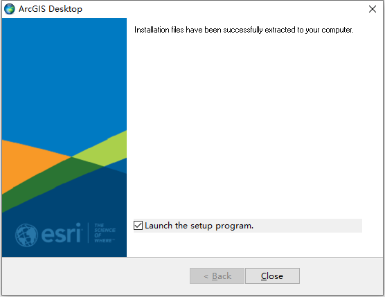4、根据上图提示,我们点击“Close”选项关闭程序,完成之后,ArcGIS Desktop 10.8软件会自动进入安装界面,如下图所示: