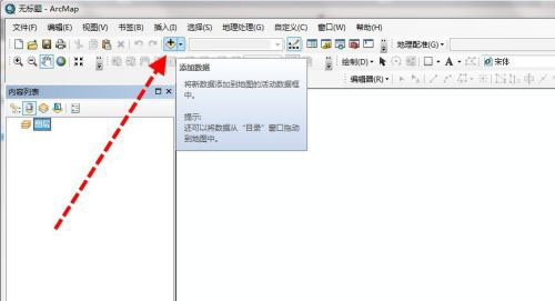 2、然后,一般情况下,我们打开arcgis后,就会点击工具栏中加号样式的按钮:添加数据(格式为shp、gdb、mdb等)或者影像(tif等),将数据添加进来,待编辑。