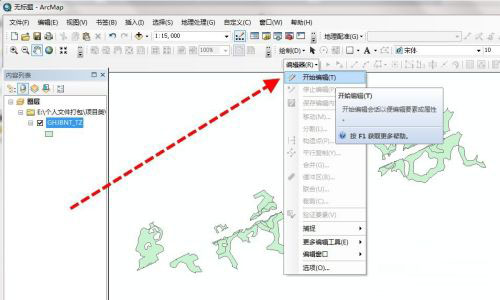 4、再对数据进行编辑,打开菜单栏中的编辑器工具栏下的开始编辑,同时这里也有停止编辑,在我们编辑数据完成后,需要保存的时候,就可以点这个停止编辑,它会提示保存。