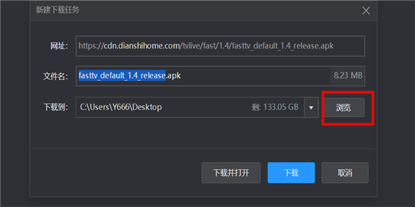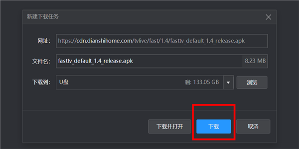 第三步:选择电视家极速版下载到自己的“U盘”里,然后用鼠标点击浏览。