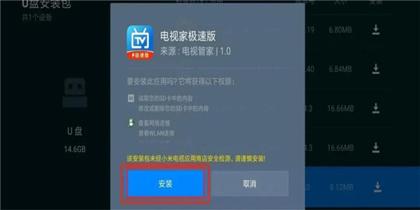 第五步:然后找到电视家的安装包,用遥控器点“确定/ok”键▼