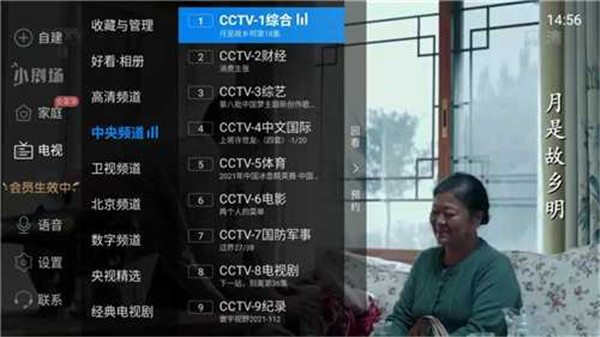 第三步:这时在电视屏幕上就会显示已经成功添加用户分享的自建频道,接下来就可以在【自建】板块中观看之前电视家软件里面没有的频道了。