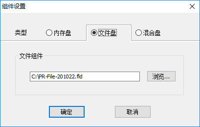 点击对话框中的组件设置,您可以对组件进行更多设置。组件是指构成虚拟硬盘的硬件设备,包括物理内存和物理硬盘。完全由物理内存构成的虚拟硬盘称作内存盘,完全由物理硬盘构成的虚拟硬盘称作文件盘,同时由物理内存和物理硬盘构成的虚拟硬盘则称作混合盘。