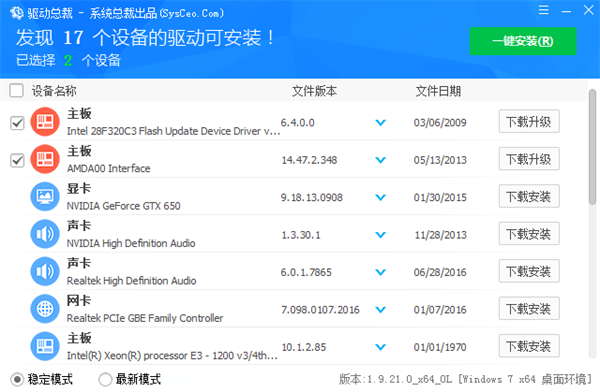 驱动总裁优先读取本地离线驱动包,服务端驱动版本和本地一样的情况下默认勾选安装本地离线驱动包,当服务端驱动版本比离线驱动版本更高或本地驱动包不存在某设备驱动的情况下默认勾选下载服务端上的驱动包进行安装。