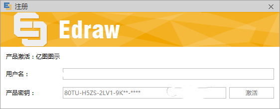 4、断开网络,启动亿图图示,点菜单“帮助->激活”,依次粘贴用户名和注册码,点击激活因为没联网,所以这时候会出现个错误对话框,关掉这对话框,然后复制注册机“Activation Code”框中的激活码,粘贴后点击激活,现在启动就是已激活版!(没有试用版字样,功能完美激活没其它问题)。
