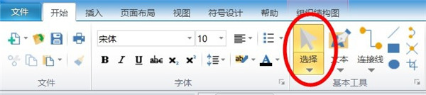①、选择“选择”工具,如右图:开始标签——基本工具——选择