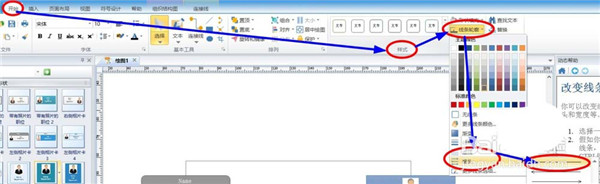 ③、然后选择不带箭头的样式:开始——样式——线条轮廓——箭头——(右侧出现的菜单的第一个样式)如下图