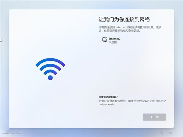 在联网的情况下正常安装 Windows 11 家庭版、家庭中文版并执行 OOBE,使用无线网络的电脑要求连接 Wi-Fi 时也请按要求正常连接。直到出现要求登录微软账户的页面: