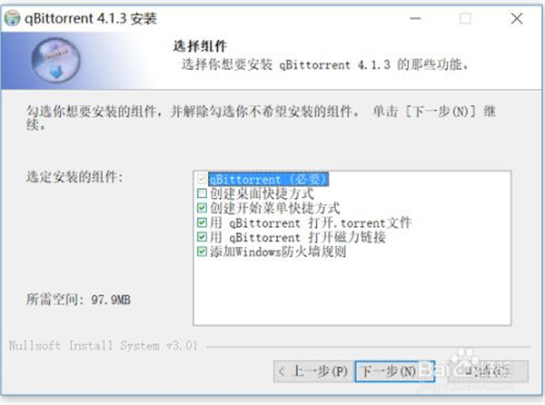 进入“选择组件”窗口,勾选你想要安装的组件,并解除勾选你不希望安装的组件,然后点击“下一步”。