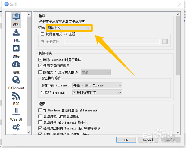 重新打开“QBittorrent”软件,就可以看到成功更改软件使用默认语言了。