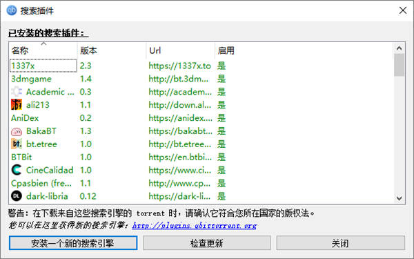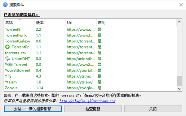 4、发现安装好了数十个搜索引擎插件。若没有发现搜索插件,可能是您的电脑系统或网络不支持运行搜索引擎插件,不能使用搜索引擎没关系,用其它搜索工具就是了,单纯使用软件的下载功能也很不错。