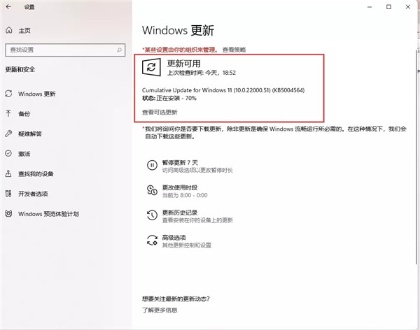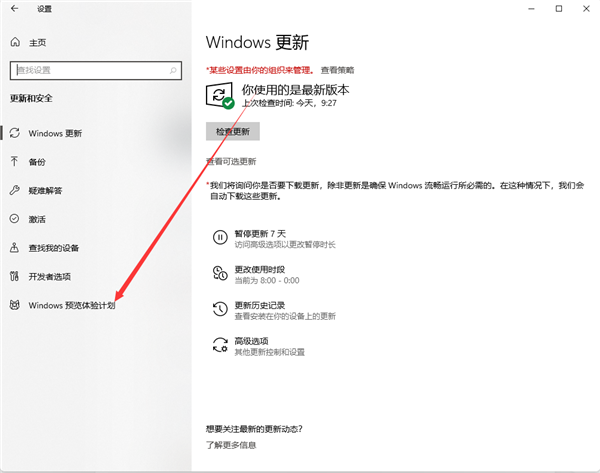 在设置中,找到更新和安全,点击最下方的【Windows预览体验计划】,登录你的微软账号,加入【Windows预览体验计划】,然后检查更新即可。