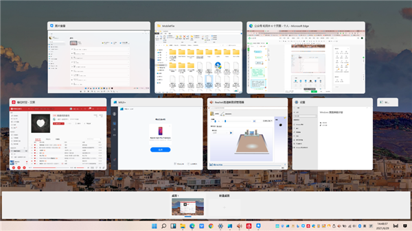 Windows11这次采用了全新的UI设计,一眼看上去给人一种焕然一新的感觉,最为明显就是任务栏的居中显示、开始菜单进行了重做,砍掉了动态磁贴,里面的图标也进行了全新设计,功能更加简单。