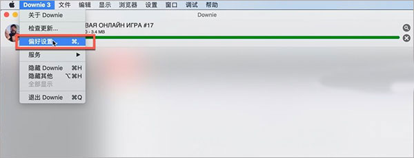1、在Downie 4菜单栏下拉列表中找到【偏好设置】;
