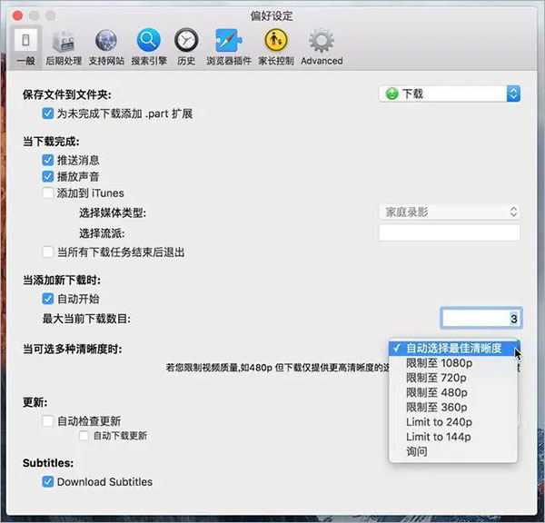 2、可以在偏好设置–>一般–>当可选多种清晰度时,选择你所需要的清晰度;