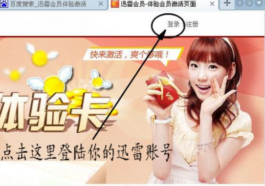 2,进到迅雷会员感受激话网页页面以后,点一下网页页面右上方的“登录”,登录自身的迅雷账号。