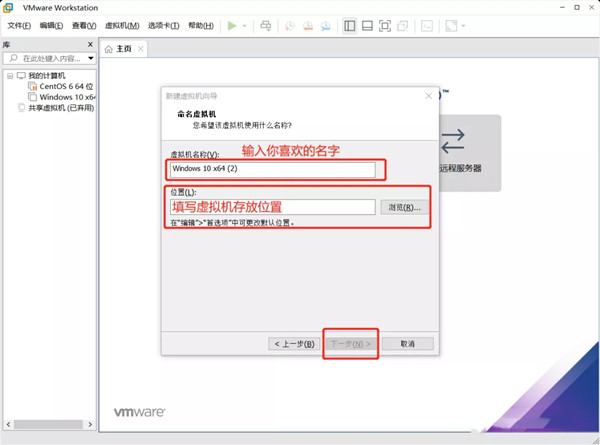 6、设置“虚拟机名称”及虚拟机存放位置。