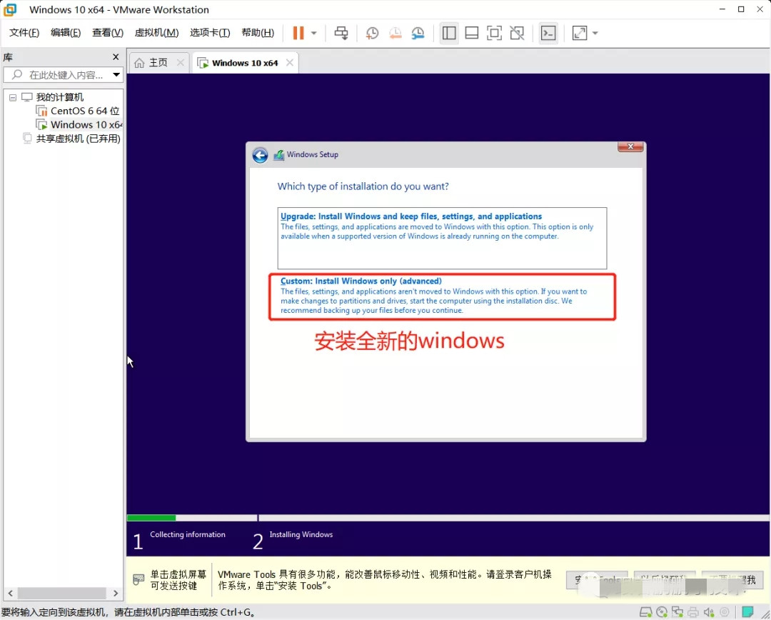 10、这里有两个选项,第一个是更新win系统,第二个是安装新的windows系统。这里鹏鹏选的是第二种安装新的系统