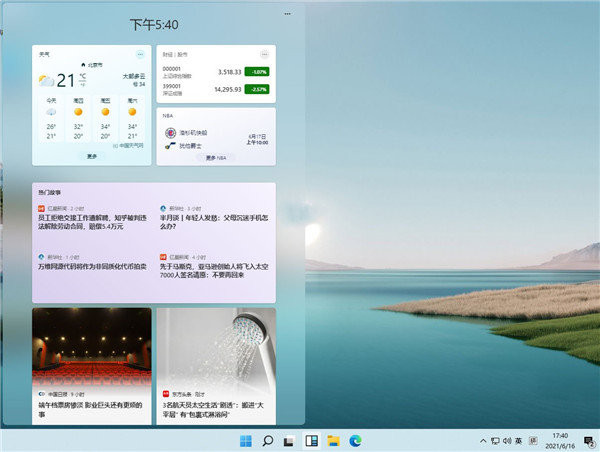 11、在微软win11系统中,任务栏默认就有这个组件,因为信息直接来自微软的新闻网站,所以使用必须先登陆MS账户。