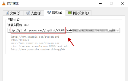 3、在“请输入网络 URL”下文本框内,将所要播放的m3u8地址粘贴上去,如下图所示:
